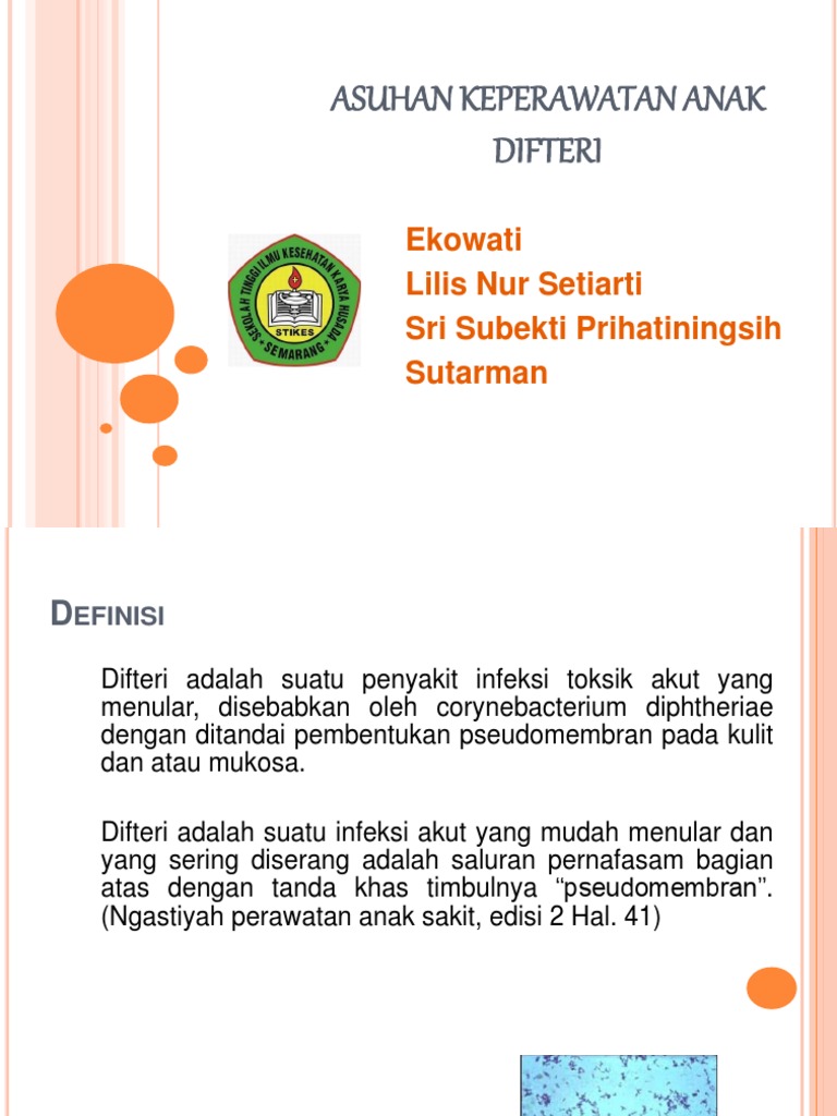They usually start two to five days after exposure. Difteri dapat menyebabkan pembengkakan, sering kali disebut leher banteng. H (Kes) Pada kesempatan ini dr.